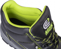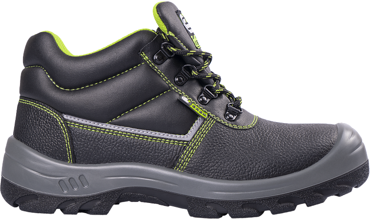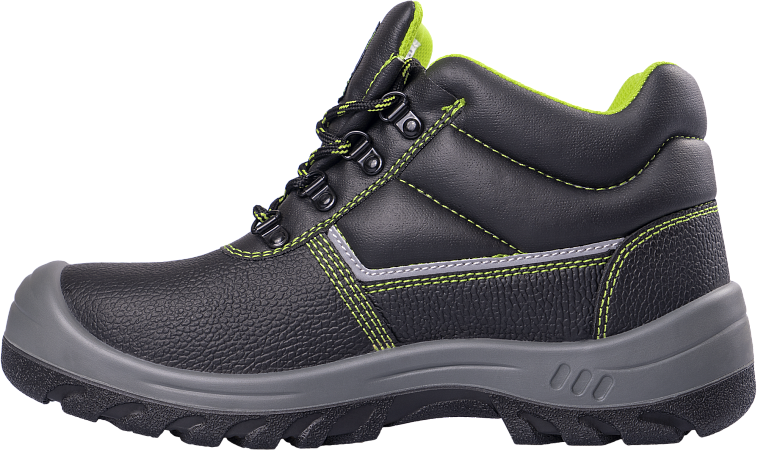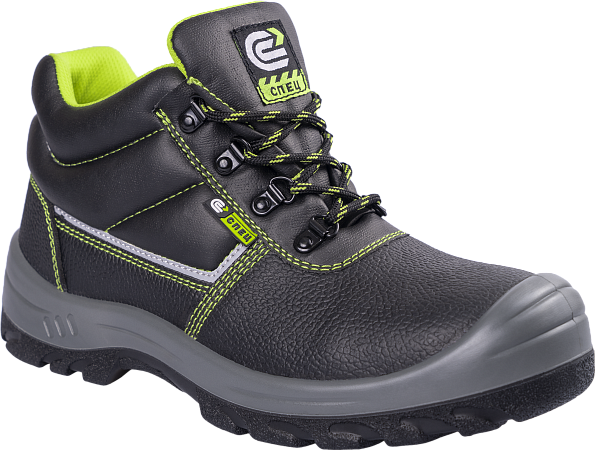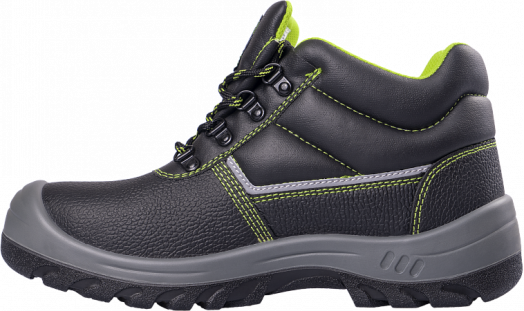 Верх ботинок изготовлен из композиционной кожи 1,6 мм (мягкий кант и язычок из винилискожи), подкладка из трикотажного полотна "ложная сетка" (салатовая). Вкладная стелька из вспененного материала с тканевым покрытием,который обеспечивает комфорт при носке. Подошва двухслойная, имеется металлический подносок, который обеспечивает защиту от уДаров носочной части энергией 200Дж, метод крепления подошвы литьевой.