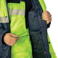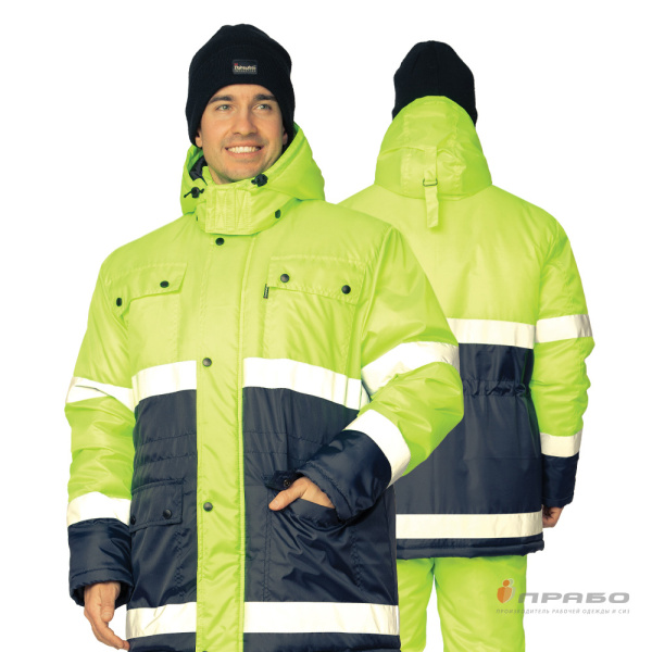 Зимний рабочий мужской костюм «Спектр 2» — утеплённая модель в линейке сигнальной одежды повышенной видимости. Костюм обеспечивает 2 класс защиты для эксплуатации в III климатическом поясе. Рабочий сигнальный костюм отшит из светоотражающей ткани с использованием светоотражающих полос (двойные СОП-50 на куртке и полукомбинезоне). Эта модель полностью соответствует 3 классу защиты сигнальной одежды. «Спектр 2» сделает работников заметнее в тёмное время суток, при плохом освещении, в тумане или облаке пыли. Костюм также выделит рабочих на местах. Он обеспечит безопасность на самых сложных участках и секторах. Модель подходит для дорожных рабочих, строителей, монтажников и обслуживающих бригад. Зимний рабочий костюм «Спектр 2» представлен ещё в оранжево-синем цвете. А также есть летний вариант костюма из той же серии и такой же расцветке. Таким образом вы обеспечите рабочих спецодеждой в едином стиле на круглый год.