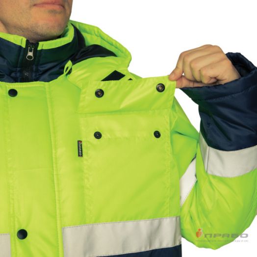 • в куртке вместительные накладные карманы для перчаток и инструментов, закрываются клапанами на кнопках, для документов и телефона предусмотрен внутренний карман.