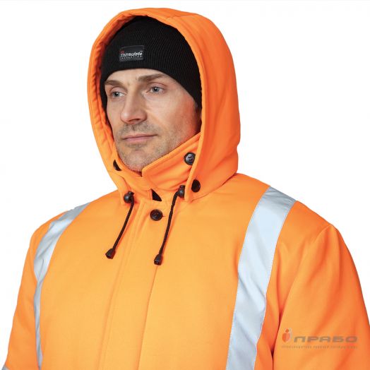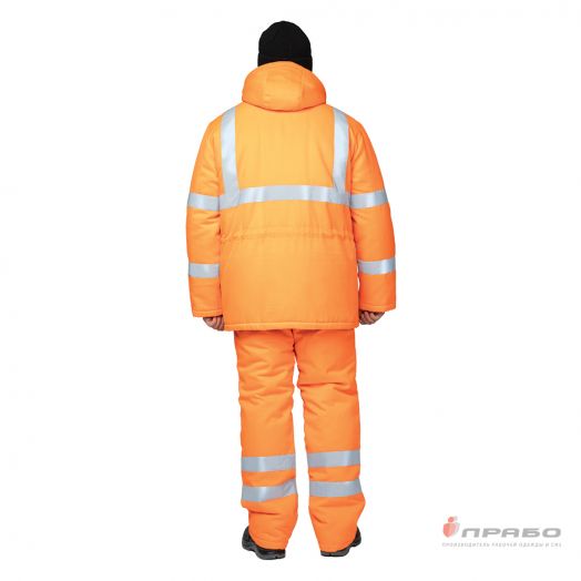 Костюм утеплённый «Дорожник 2» оранжевый сигнальный — это модель костюма от производителя ПРАБО в линейке недорогой сигнальной одежды повышенной видимости. Утеплённый костюм предназначен для работников дорожных служб и других отраслей при работе в зимнее время на открытом воздухе. Костюм соответствует ГОСТ по 3 классу сигнальной защиты, имеет 2 класс защиты от пониженных температур и гарантирует защиту до -18°С (предназначен для III климатического пояса). Костюм сшит из смесовой ткани плотностью 190 г/м² с влагоотталкивающей пропиткой, обладает повышенной устойчивостью к влаге и атмосферным осадкам, и дополнительно обеспечивает защиту от общепроизводственных загрязнений. Костюм комплектуется утеплённой курткой со съёмным капюшоном и тёплым удобным полукомбинезоном. Пакет утеплителя в куртке состоит из синтепона и слоя спанбонда. Такой пакет утеплителя гарантирует защиту от холода и продувания, а слой спанбонда предотвращает миграцию утеплителя.