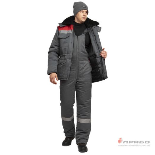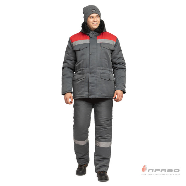Карманы. Куртка: 2 верхних и 2 нижних накладных кармана с клапанами на кнопках; внутренний накладной карман, застёгивающийся на контактную ленту. Полукомбинезон: передние боковые карманы с наклонной линией входа. Сигнальные элементы: СОП 50 мм.
