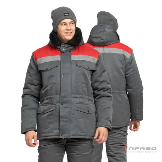 Куртка: прямого силуэта, с меховым воротником, с центральной застёжкой на молнию и ветрозащитной планкой на кнопках. Рукава с внутренними трикотажными манжетами. По линии талии куртка регулируется по объёму благодаря кулиске. Капюшон: утеплённый, съёмный. Подбородочная часть капюшона широкая, застёгивается на две кнопки.
