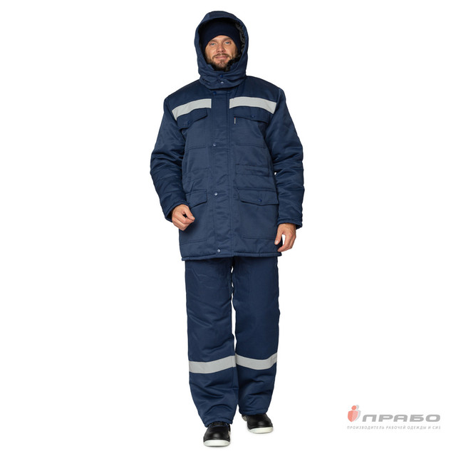 Карманы. Куртка: 2 верхних и 2 нижних накладных кармана с клапанами на кнопках; внутренний накладной карман, застёгивающийся на контактную ленту. Полукомбинезон: передние боковые карманы с наклонной линией входа. Сигнальные элементы: СОП 50 мм.