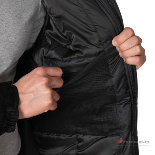 Карманы: верхние нагрудные прорезные вертикальные карманы с листочкой, с застёжкой на молнию; нижние прорезные карманы с застёжкой на специальную влагозащитную молнию; в верхней части рукава прорезной карман с листочкой, с застёжкой на молнию; внутренние накладные карманы увеличенного размера из сетки, с левой стороны внутри накладного кармана из сетки расположен накладной карман из основной ткани с застёжкой на молнию.